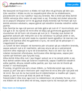 Familja thekson gjithashtu se Alba nuk i jep llogari askujt për jetën e saj personale dhe se fenomene si tradhtia apo dhuna nuk duhet të normalizohen, pavarësisht se ndodhin shpesh edhe jashtë formatit televiziv.