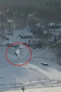 Pamjet filmike tregojnë helikopterin teksa afrohet ngadalë mbi pistën e skive. Piloti duket se beson se ka fituar lartësi të mjaftueshme për të kaluar mbi kabllot, por pak çaste më vonë mjeti ajror kapet papritur, tërhiqet me forcë mbrapsht dhe më pas shkëputet, duke u rrëzuar dhunshëm mbi dëborë.