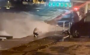 Një video tronditëse e regjistruar në Paignton ka kapur momentin kur një vajzë adoleshente i shpëton për pak një tragjedie, teksa përpiqej të bënte një selfie mbi murin e portit gjatë stuhisë së fuqishme Storm Ingrid.