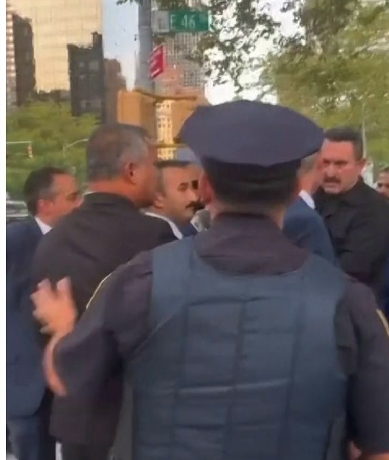 Sipas pamjeve filmike, Erdogan dhe ekipi i tij i sigurisë mbetën të bllokuar nga policia, ndërsa po largoheshin nga selia e Kombeve të Bashkuara, ku ai po merr pjesë në Asamblenë e Përgjithshme të OKB-së. Oficerët ndaluan kalimin e tij derisa të kalonte kortezhi i Trumpit.