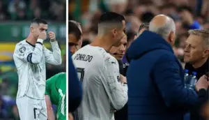 Cristiano Ronaldo ka marrë kartonin e parë të kuq në karrierën e tij ndërkombëtare, në ndeshjen kualifikuese kundër Irlandës, duke shënuar një moment historik të hidhur në paraqitjen e tij të 226-të me Portugalinë. Incidenti ndodhi pasi mbrojtësi Dara O’Shea e tërhoqi dhe e shtyu vazhdimisht gjatë lojës, çka e çoi Ronaldon të reagojë me një goditje me bërryl. Fillimisht arbitri e ndëshkoi me të verdhë, por pas rishikimit vendimi u konvertua në karton të kuq direkt.