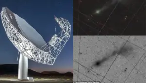 Shkencëtarët kanë regjistruar për herë të parë një sinjal radio nga kometa ndëryjore 3I/ATLAS, e cila po kalon nëpër sistemin tonë diellor që prej zbulimit në qershor. Sinjali është kapur nga teleskopi radio MeerKAT në Afrikën e Jugut më 24 tetor, pas disa përpjekjeve të dështuara më 20 dhe 28 shtator. Detektimi tregon praninë e molekulave hidroksil (OH), të përbëra nga hidrogjen dhe oksigjen, të cilat zakonisht shfaqen kur materiali i një komete shpërbëhet nga rrezatimi diellor.